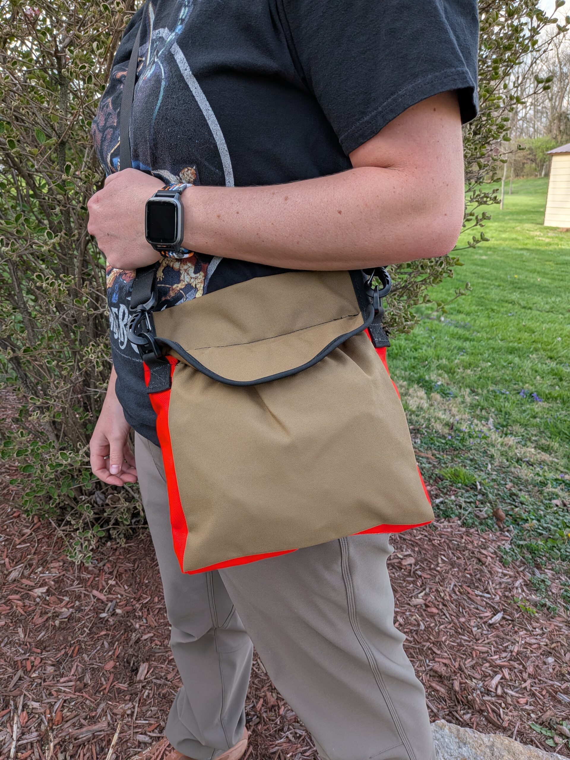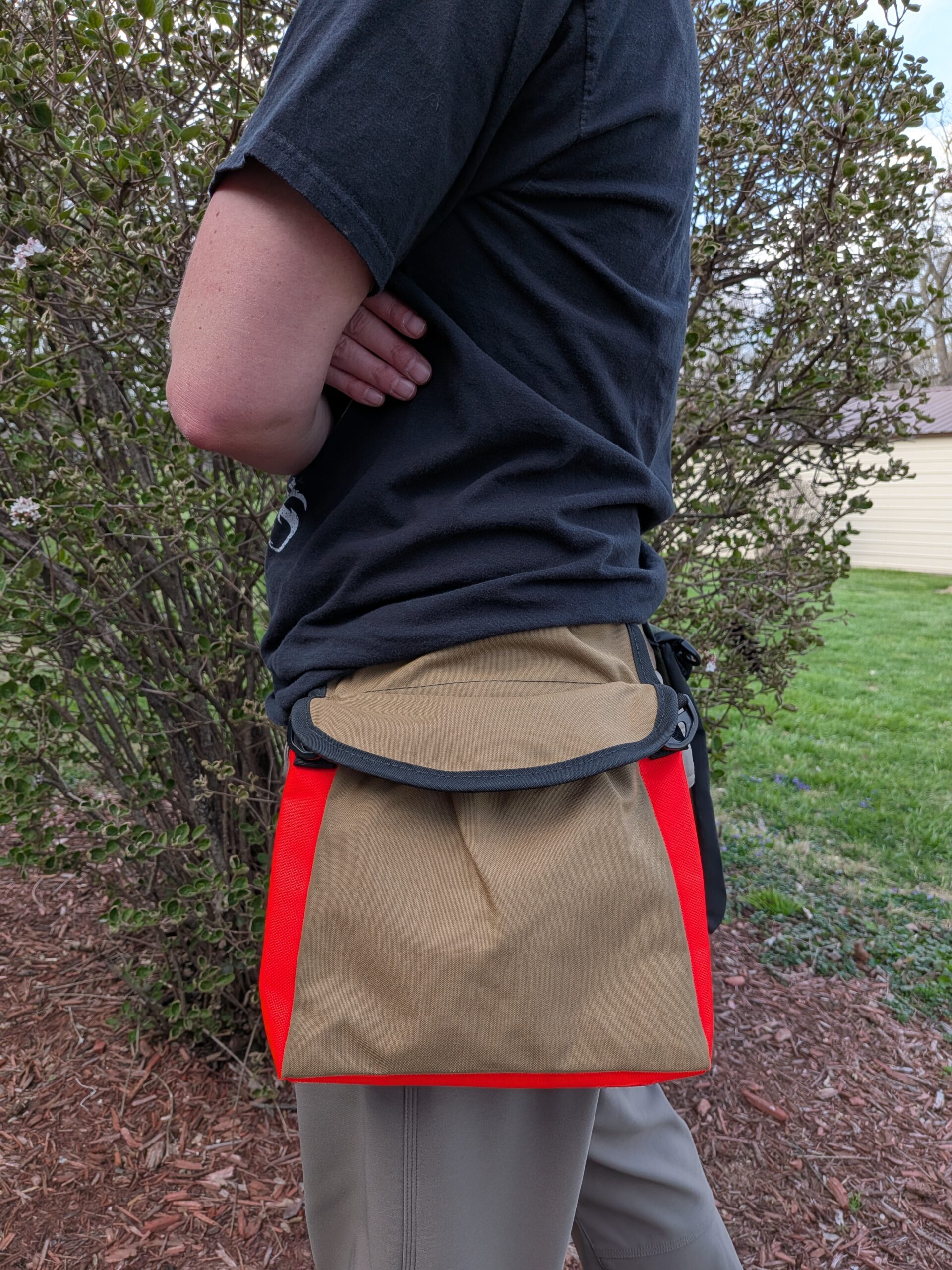 • The Coyote Brown and Orange bag is smaller, approximately 8.5 inches tall by 9.5 inches wide (again inside bag dimensions) and 11 inches tall (including the belt loop).